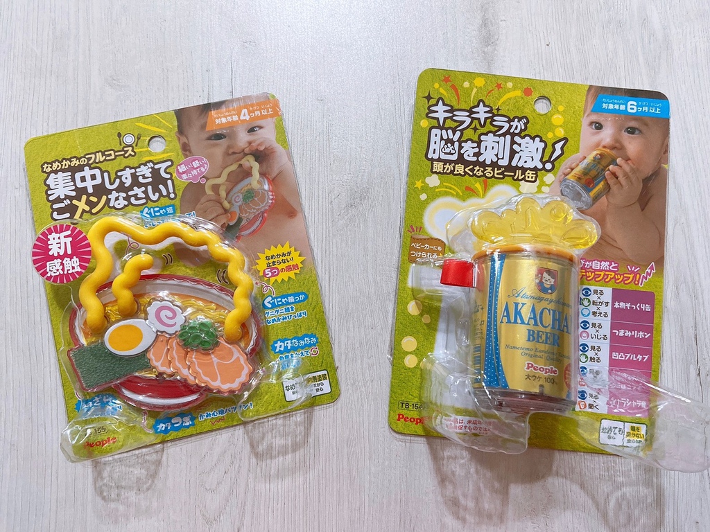 最近收到了日本品牌People的美味拉麵咬舔玩具、金色啤酒咬舔玩具,